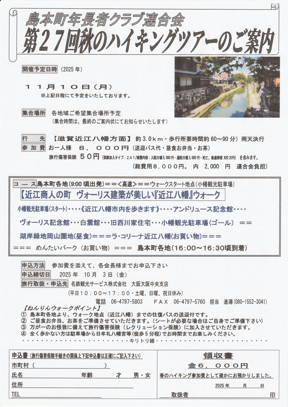 10月3日が締め切りですので、各単位クラブの代表宛に、申込ください。